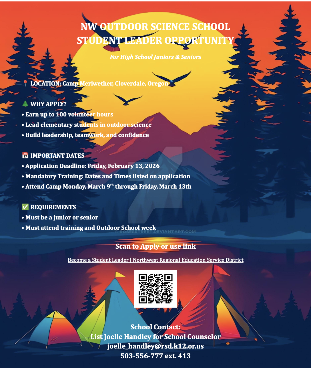 Apply Now to Become an Outdoor School Student Leader